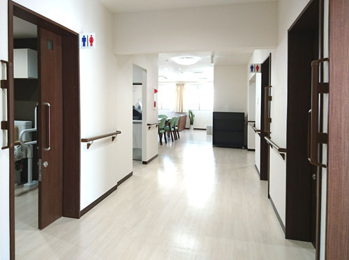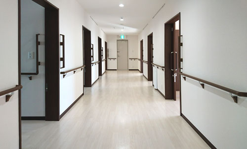館内は段差のないバリアフリー設計になっています。歩きやすく、いたるとこに手すりがついていたりと、快適な生活のための多くの工夫がされています。