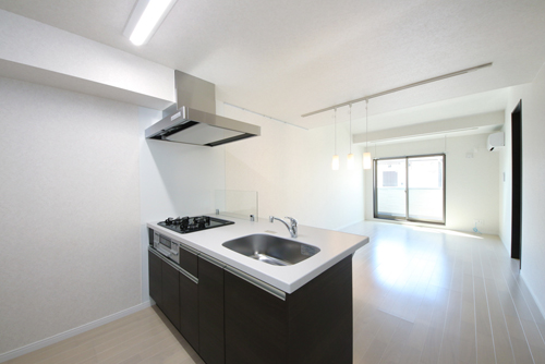 居室はワンルームと1LDKの2タイプです。1LDKタイプには、スタイリッシュな印象と開放感のあるアイランドキッチンを採用しました。また、ウォークインクローゼット上部に開口部を設け、自然光を取り入れる工夫もしています。