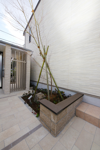 敷地内は空間の多い、ゆったりとしたつくりとなっており、植栽を配した中庭には入居者さん同士のコミュニケーションがとれるよう、ベンチも設置されています。