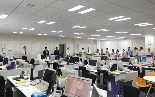 業務開始日には東東京支社の従業員約70名で全体朝礼を行いました。社員一同気持ちを新たに、より一層業務に励んでまいります。