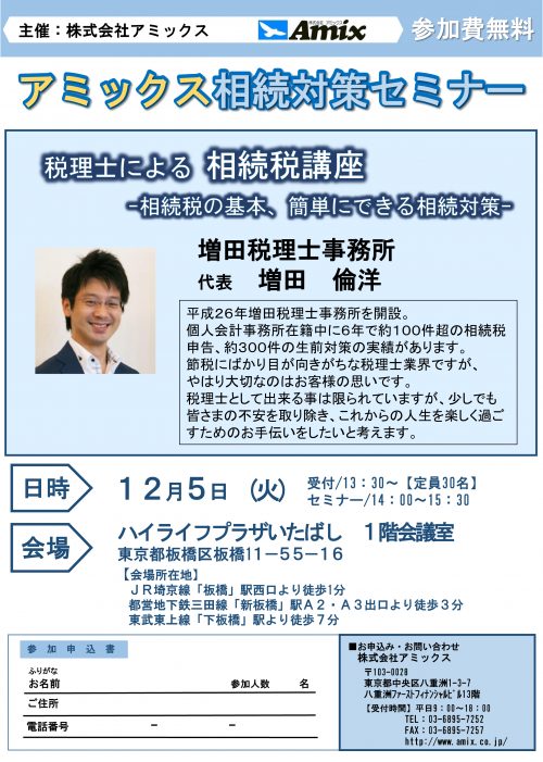 →「アミックス 相続対策セミナー」お申し込みフォーム