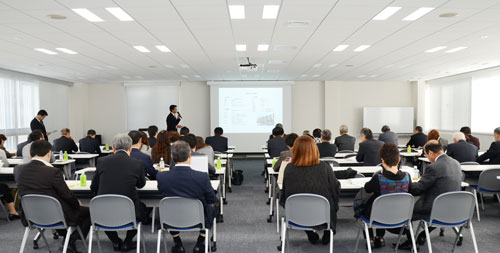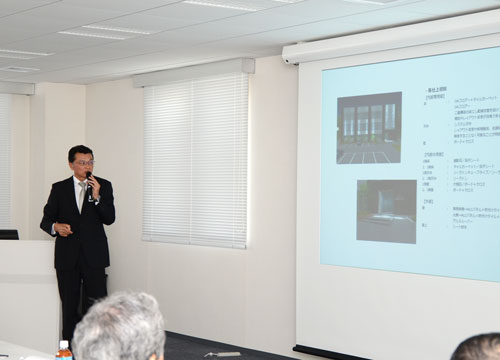支社見学では建築部の担当役員より建物(鉄骨造・3階建て)の概要をお話しいたしました。