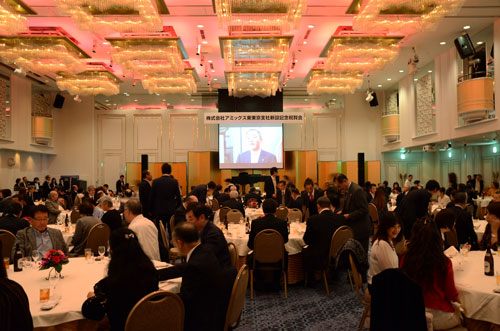 乾杯の音頭は弊社前社長であり現オーナーの木村様にお願いしました。アミックスの設立から現在までの様子をお伝えする映像をご覧いただきながら、お食事とともに、和やかな歓談のひとときとなりました。