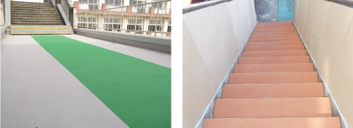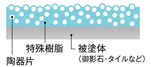 透明度が高い「クリアグリップ」は、天然石やタイルなど元の色合いを活かしたまま施工することができます。また、学校・工場などで床面を着色したい場合には、5色から選べる色付きの「カパラグリップ」が適しています。