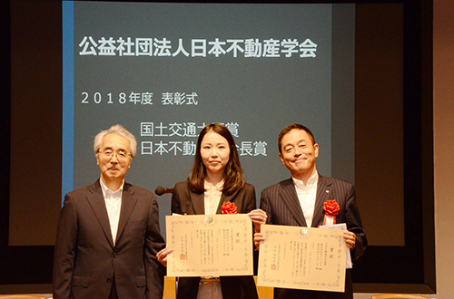 「業績賞」は、新機軸を打ち出した不動産事業、それにかかわる制度の創設など幅広い対象のなかから優秀な業績を顕彰するもので、年に一度「日本不動産学会長賞」と「国土交通大臣賞」が決定します。