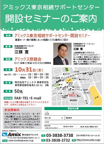 「 アミックス東京相続サポートセンター 」開設記念 セミナー 開催 のご案内