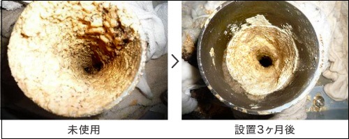 「ナノゲート」は導入後 3~6 ヵ月程度で効果が表れてきますが、水質は変わらないため、これまで通り安全に利用できます。「ナノゲート」は、水アカの固着防止のみならず、トイレや排水溝のつまりや悪臭対策として、赤水(赤サビ)や漏水予防に最適で、給排水設備の延命とメンテナンスコストの削減が可能となります。