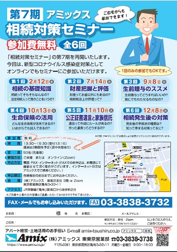 第7期「相続対策セミナー」(6回シリーズ)チラシ
