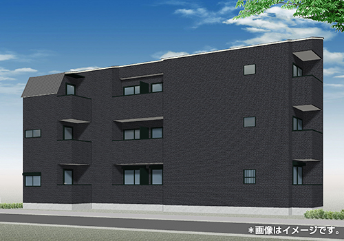 落ち着いたシックな色合いが印象的な木造3階建てアパート(全12戸)です。こちらは既存の建物からの建替え物件となります。