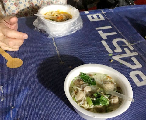 定番の麺料理「バクソ」(上)とアヒルを素揚げした「ベベック」