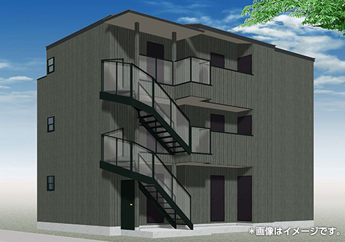 スタイリッシュな外観の木造3階建てアパート(1棟9戸)です。