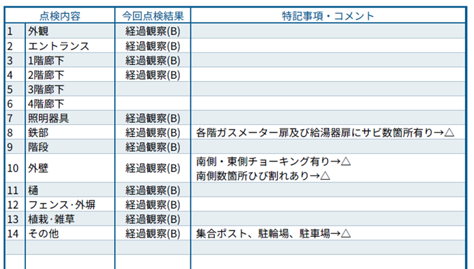 報告書では、共用部巡回の結果をもとに、修繕の要否などにについてご提案しています。オーナーの皆さまに報告書をご覧いただき、今後の方針についてご相談していけたらと思っております。