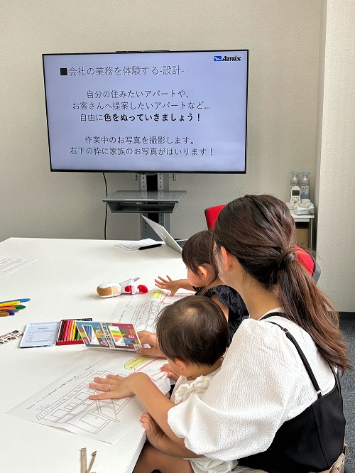 アミックスがすすめている、社員向けの子育て支援プロジェクト「すくすくアミックス」。その企画のひとつとして、今年も、八重洲本社と東東京支社で“子ども参観日”を開催しました。