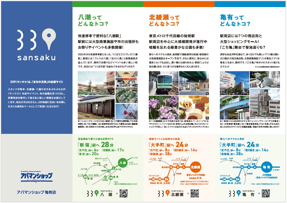 アミックスが地域の情報をお届けするウェブサイト「339(サンサク)」。これまで「北綾瀬」と「八潮」を運営していましたが、今年8月よりあたらしく「339亀有」をスタートさせました。