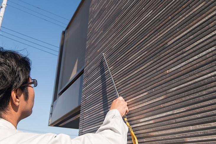具体的には、計画修繕工事が推奨時期に近付いた自社建築物件について、オーナー様との契約更新の8ヵ月前に、営業、建築、管理の各担当が物件を調査確認します。