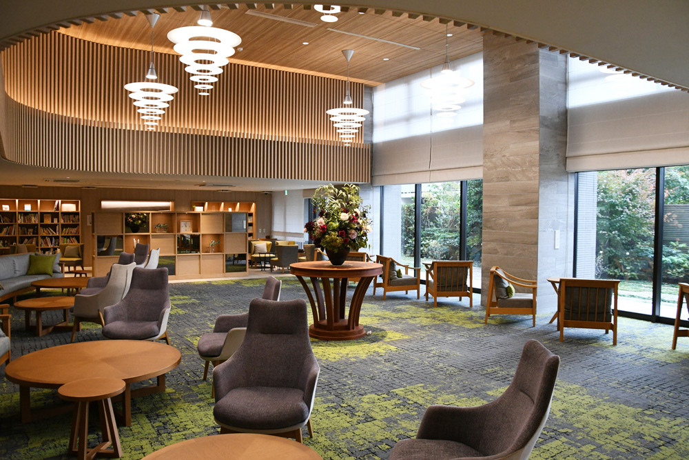 お伺いしたM様のお住まいは、コンシェルジュが常駐しており、健康サポートや24時間の見守り、駅までの定時送迎など、さまざまなサービスが受けられる、シニア向けの分譲マンションです。大浴場やレストランも併設されています。
