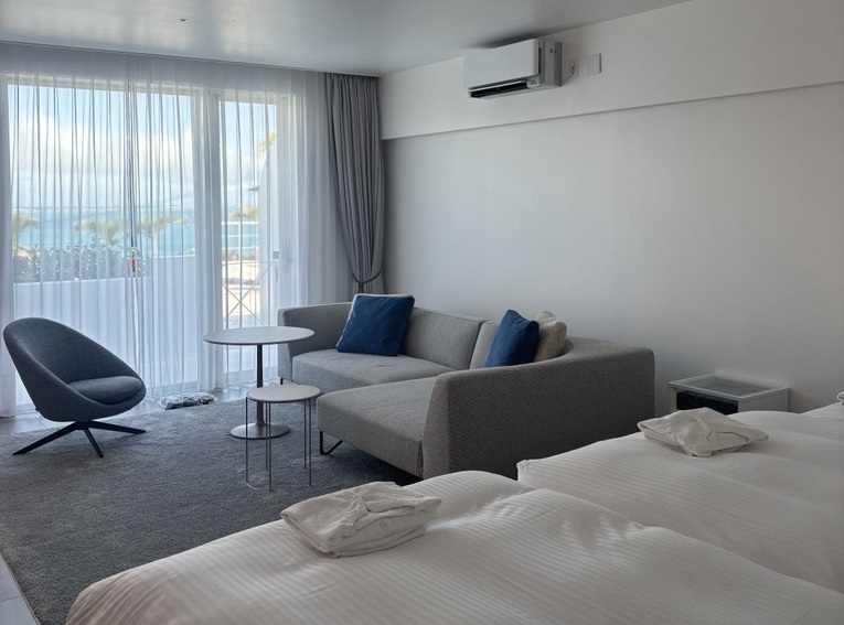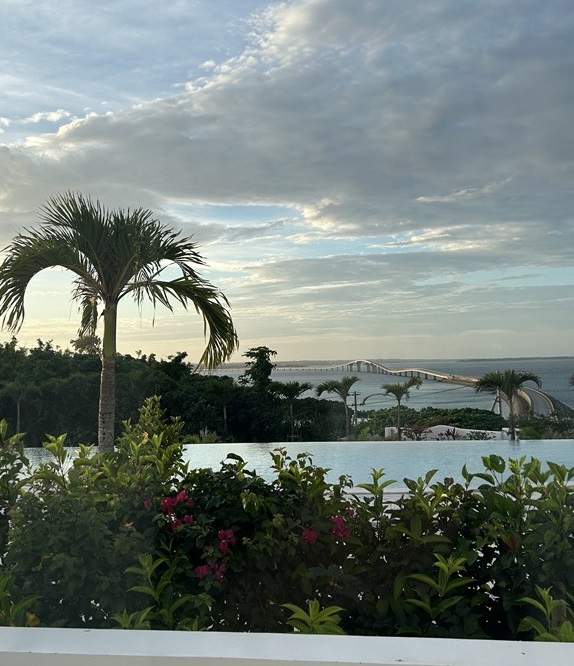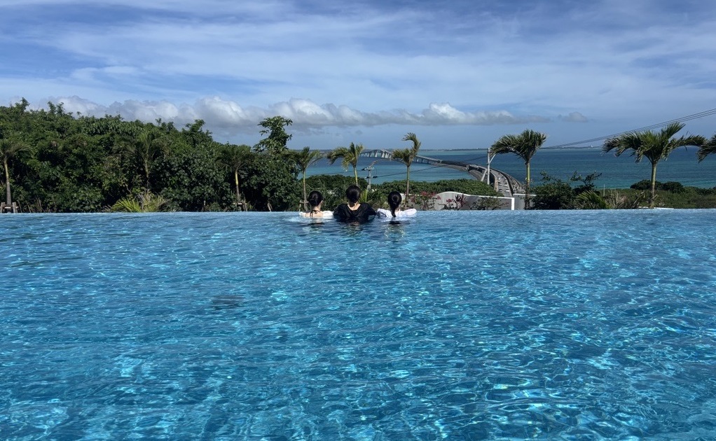 ホテルは、宮古島と伊良部島を結ぶ伊良部大橋のたもとにあり、宮古ブルーの海と橋の景色を一望できる贅沢な眺望が魅力。清潔感あふれる客室や充実した設備、ホスピタリティあふれる接客など、リゾートでありながら、落ち着いて快適に過ごせる空間が印象的でした。