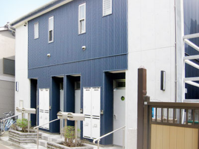 長屋建ては共同廊下などの共有部分を持たないため、2階住戸には1階から直接各戸の玄関へ入れるようそれぞれ専用の階段を設置しています。