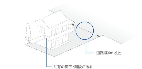 アパートやマンションなど、玄関や廊下、階段など共有する部分がある集合住宅のことを「共同住宅」といいますが、共有スペースがない長屋建ては共同住宅には分類されません。