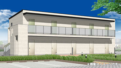 共同住宅の建築に制限のある土地でも対応できる長屋タイプ。1棟3戸の木造2階建てのアパートです。この機会にぜひご覧ください。