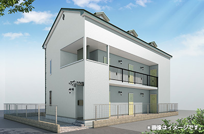 ゆとりのある居室とオートロックを備えたカラーアズHタイプ。アミックスの管理物件を建替えた2階建て4戸のアパートです。この機会にぜひご覧ください。