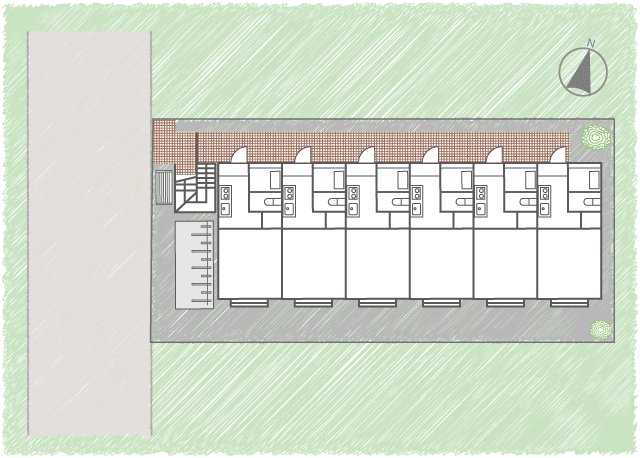 東京に隣接した埼玉県南部の開発地域。西側幅6mの道路に面した立地にカラーアズHタイプ1棟12戸を建築しました。