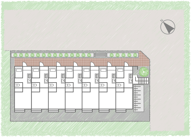 東京に隣接した埼玉県南部の開発地域。駅から徒歩8分の好立地。カラーアズHタイプ1棟14戸を建築しました。