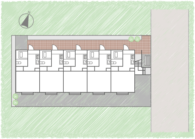 東京に隣接した埼玉県南部の開発地域。敷地約61坪にカラーアズHタイプ1棟10戸を建築しました。
