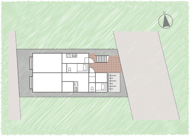東京23区内、駅から6分の好立地。木造3階建ての賃貸併用住宅1棟5戸(賃貸4戸+オーナールーム1戸)を建築しました。