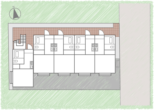 東京23区内。敷地約53坪にカラーアズHタイプ1棟10戸を建築しました。