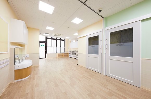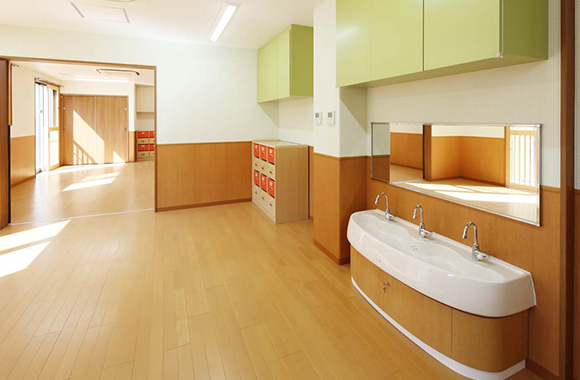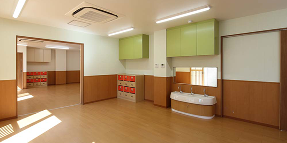 保育園には子どもの安全を守り、成長に合わせて快適に過ごせるための適切な設備が必要となります。アミックスでは、保育園運営の専門会社の設計をもとに、最適な内外装や設備を設置しています。