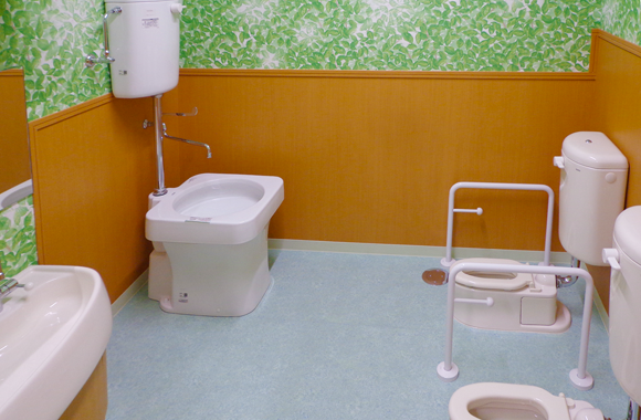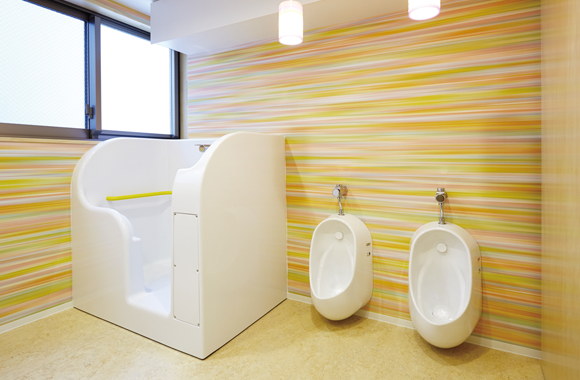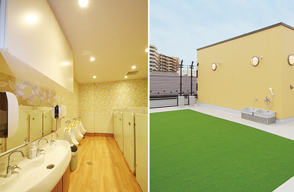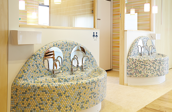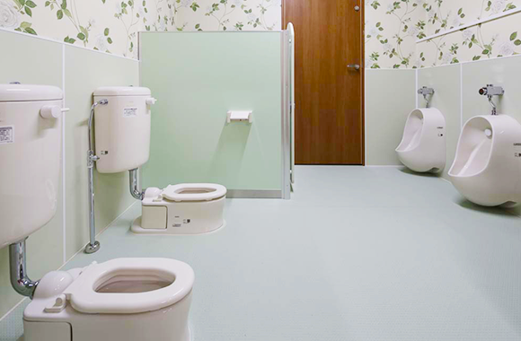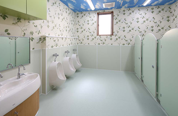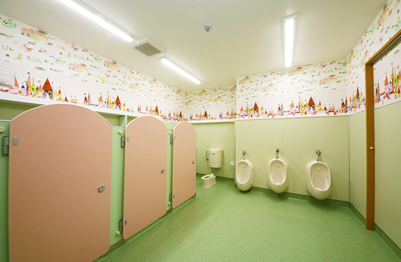 清潔感があり明るく開放的、安心して利用ができる園児用トイレ