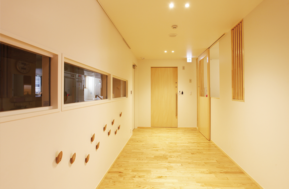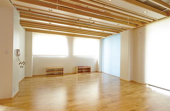 一部に床暖房を設置、木のぬくもりを感じる保育室