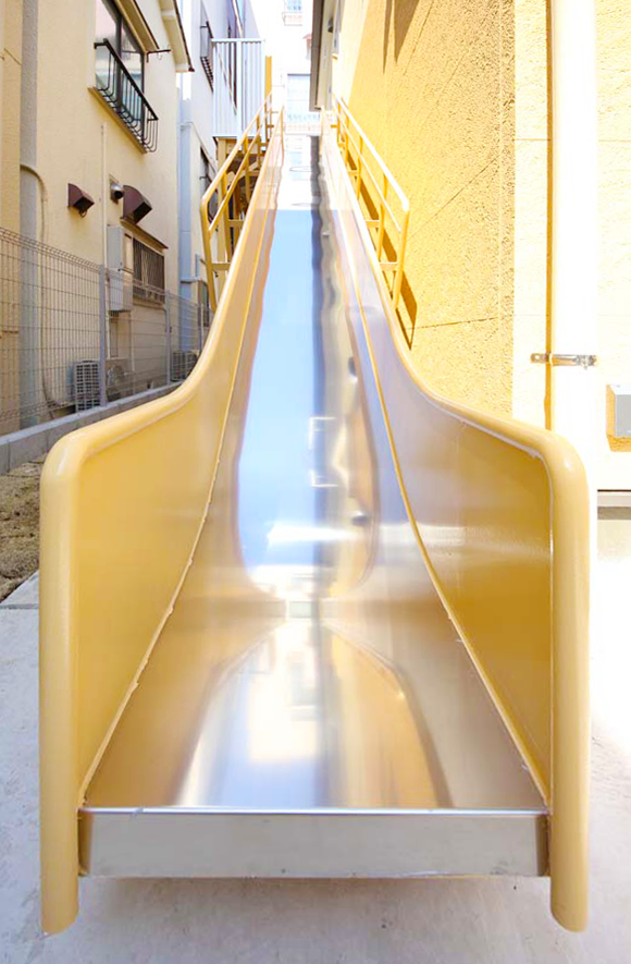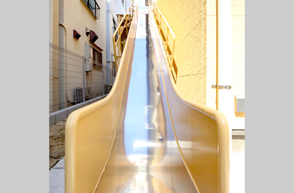 火災など万一の事態にそなえた、園舎2階からの避難用滑り台