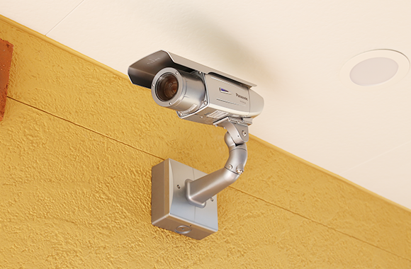 安全に配慮し、子どもの手の届かない高さに設置されたドア鍵