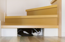 「ネコ共生アパート」には、ネコ飼養のための設備やさまざまな工夫が施されています。また、キズがつきにくい壁紙や床材を採用しているため、入居者の入替時の原状回復費用を低減することも可能です。