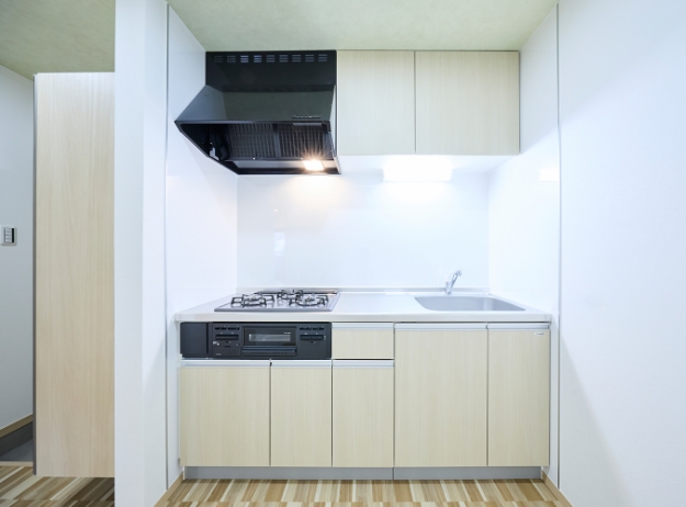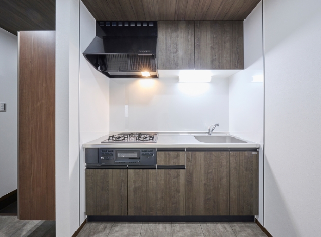 室内配色は2パターン。三口コンロのキッチンはスペース広々。