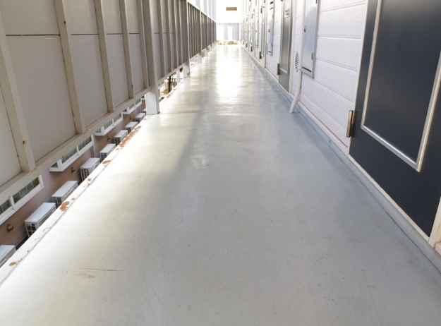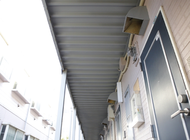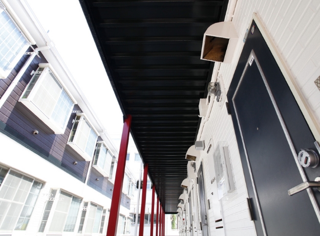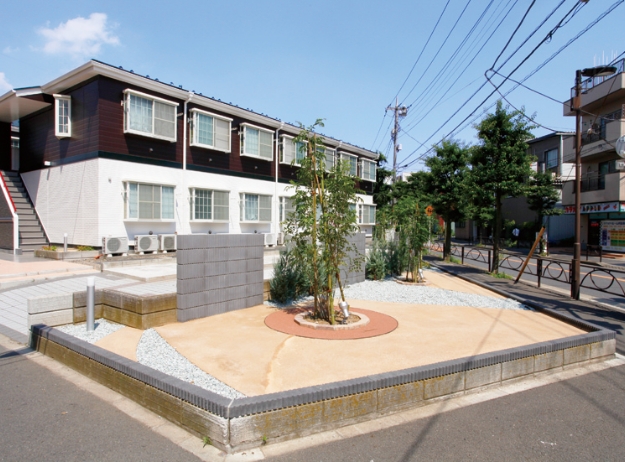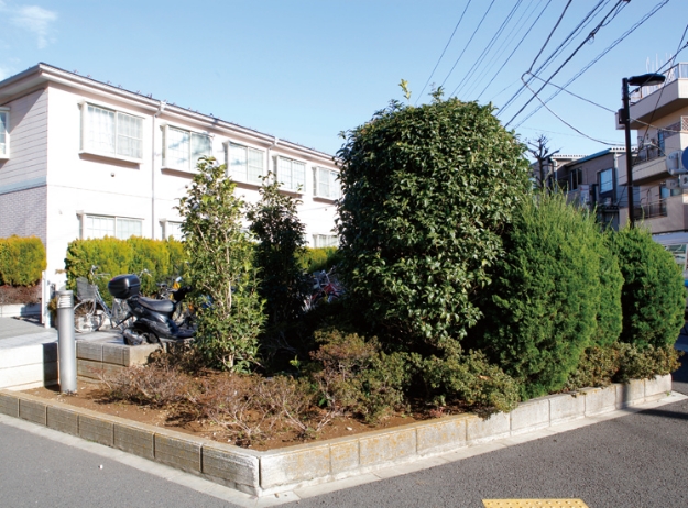 アパート建築当時は、建物の周りを覆うような植栽が一般的でしたが、現在では、防犯上からあまり好ましくないとされています。今回のリフォームでは、生い茂った植栽を撤去し、見通しのよい空間をつくりました。