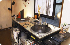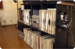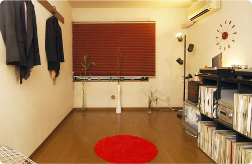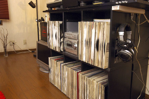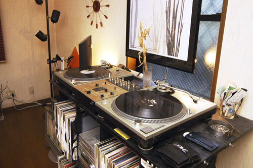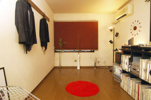 以前はDJをしていたというOさん。窓側にはDJブースがあり、レコードがぎっしりと並んでいます。ほかにも、部屋のところどころにOさんのセンスを感じさせる花瓶や椅子などが置かれています。