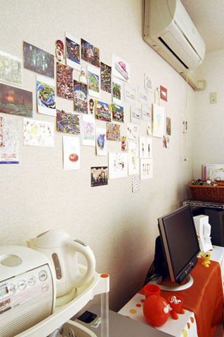 「高い物はなにもない」そうですが、置いてあるものひとつひとつにTさんの個性を感じることができます。壁に貼られたポストカードは、市販のものや友人から送られたものだそうです。印象的なインテリアになっていました。