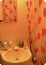 ハートのパワーがあふれるユニットバス。Yさんが存分にひとり暮らしを楽しんでいる様子が伺えて、こちらも嬉しくなってきます。これからもハートで元気に楽しい毎日を過ごしてくださいね!