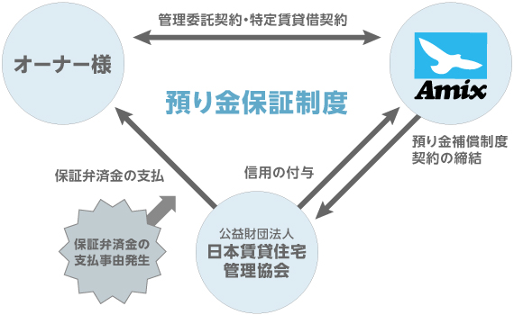 また、当社は公益財団法人 日本賃貸住宅管理協会(日管協)が提供する「預り金保証制度」に加入しています。