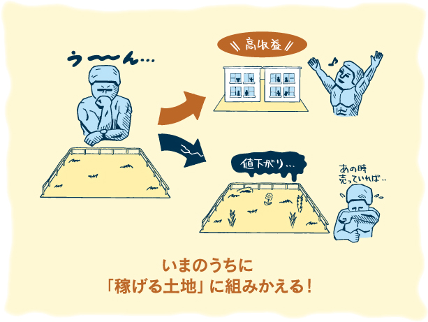持っている土地を「稼げる土地」に取り替えることができるのです。
